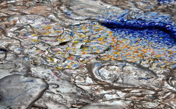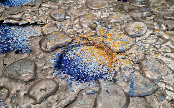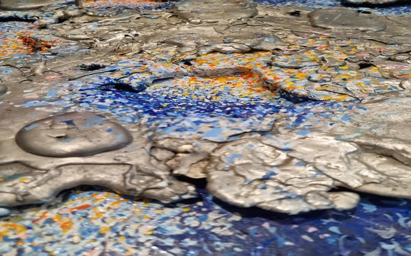 She loves to experiment with different materials that she incorporates into her compositions, she loves colors that gain volume with her, she loves to merge painting and sculpture into new, original and joyful forms.