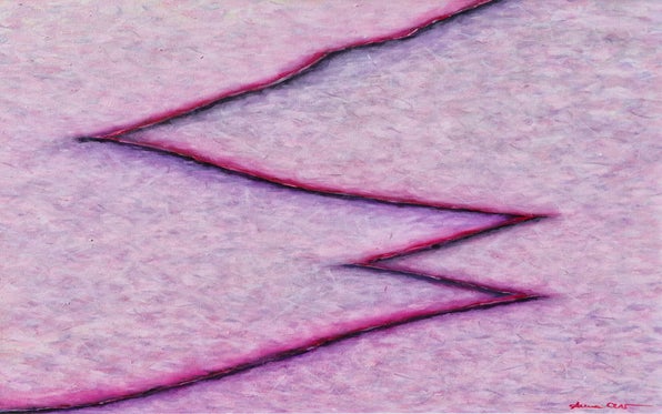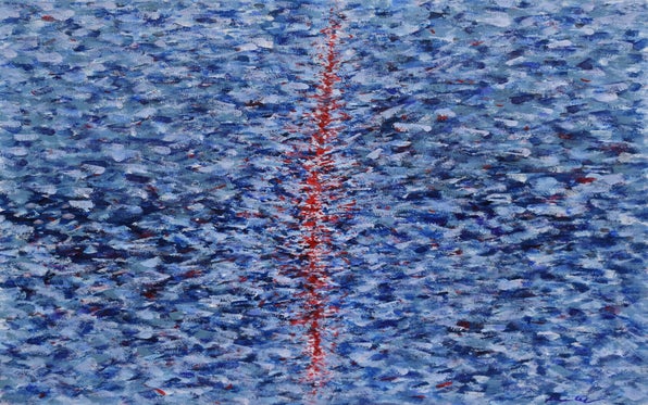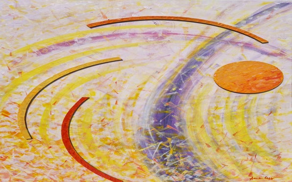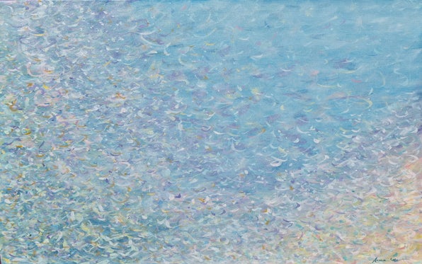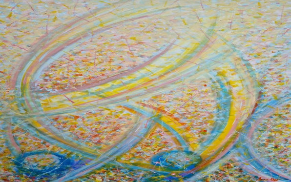 An irrepressible expression of feelings, an emotional involvement springs from the inimitable touches of color, juxtaposed in a rhythmic movement of minute brushstrokes and elongated lines that widen into dynamic shapes expanding in space. Her works can be defined as a synthesis of the ἄπειρον, the limited and the indefinite.